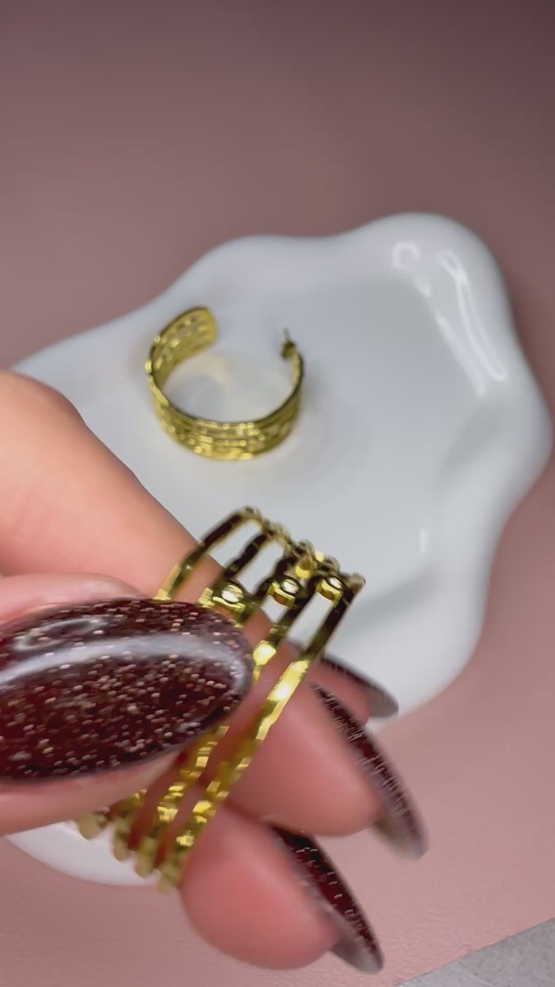 Dunia es ese brillo que no pide permiso. Aros dorados con textura orgánica y finas circonitas que parecen chispitas de luz atrapadas en el metal.